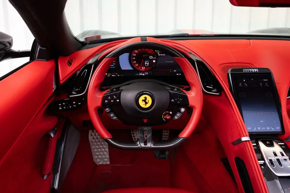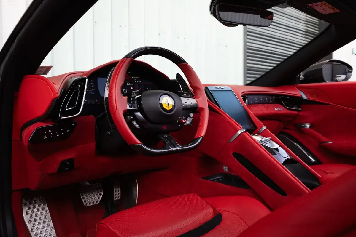 À l’intérieur, l’habitacle allie minimalisme, technologies avancées et matériaux nobles. Pensée pour le confort du conducteur et du passager, la Roma Spider est parfaite pour ceux qui souhaitent vivre une expérience Ferrari élégante, moderne et exclusive, sans compromis sur le luxe.